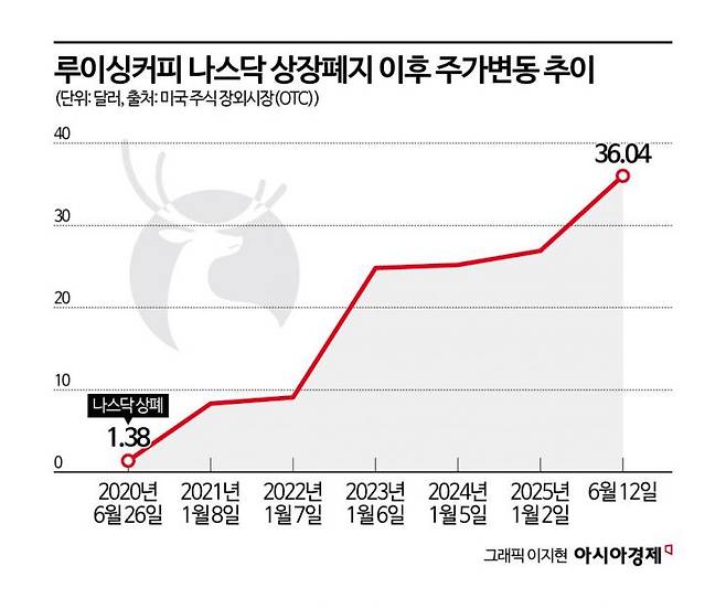 2020년 나스닥에서 상장폐지된 이후 미국 장외시장에서 거래 중인 루이싱커피의 주가는 최근 상승세를 보이고 있다. 미국 주식 장외시장(OTC)에서 연초 26.92달러였던 루이싱커피의 주가는 12일(현지시간) 36.04달러로 34% 상승했다. 루이싱커피가 뉴욕 맨해튼에 연내 첫 매장을 열 것이라 밝히면서 미국 매출 확대 기대감이 커지고 있다.