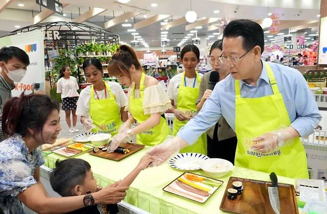 전라남도는 13일 캄보디아 수도 프놈펜 북서부에 위치한 대형 쇼핑몰 '이온몰 센쏙 시티'에서 '전남 케이-푸드(K-Food) 판촉전'을 열어 해조류와 장류 등 36종의 전남산 제품을 선보여 현지인들에게 큰 호평을 받았다.