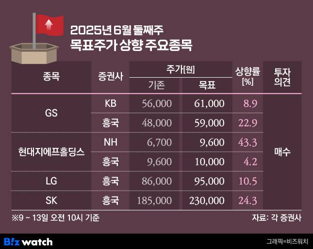 국내 증권사들이 이재명 정부의 상법 개정 재추진과 함께 자회사 실적 회복, 자산 가치 등을 반영해 지주회사 목표가를 상향 조정했다. 특히 복수 증권사가 GS와 현대지에프홀딩스 목표주가를 높여잡았다.