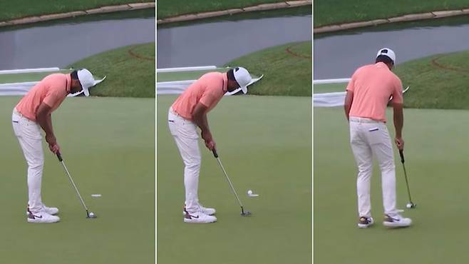 피나우는 실망한 듯 걸어가며 한 손으로 공을 툭 쳐 홀에 넣으려 했는데, 살짝 뒤땅을 치는 바람에 공을 홀까지 절반도 보내지 못했습니다. 미국 프로골프 역사상 가장 짧은 퍼트를 놓친 것입니다. 결국 피나우는 1m에서 3퍼트를 하면서 더블 보기를 범하고 말았습니다.