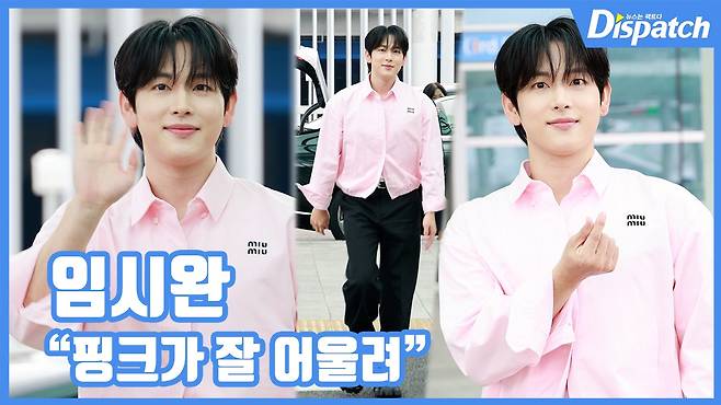 이날 임시완은 핑크색 셔츠에 블랙 팬츠를 매치해 뽀얀 피부와 찰떡인 공항패션을 선보였다.