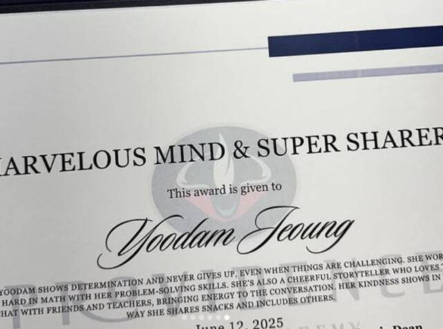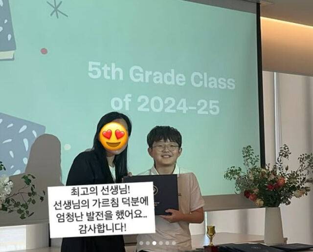 이어 “최고의 선생님. 선생님 가르침 덕분에 엄청난 발전을 했어요. 감사합니다”라는 글과 함께 시욱 군이 상을 받는 사진을 공유했다.