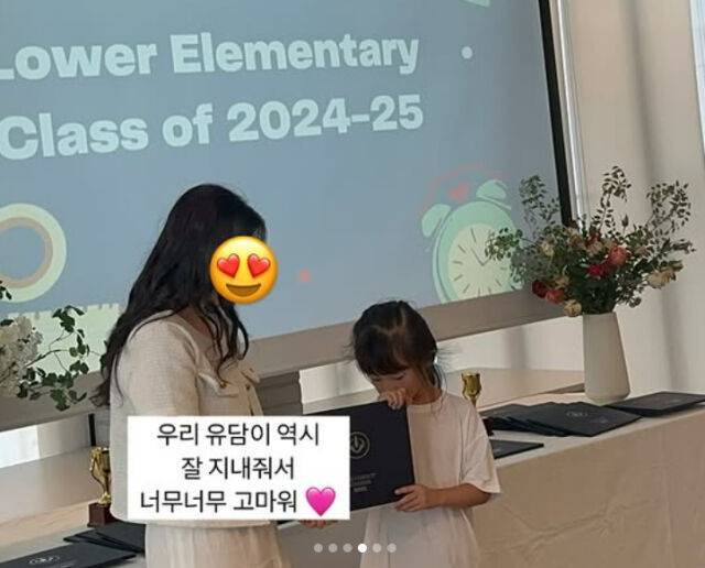 그는 13일 개인 계정에 “어제 아이들 학교 종업식이 있었어요. 한 학기동안 새로운 학교에서 잘 적응하고 최선을 다해준 시유남매에게 너무 감사했어요. 학부모들이 참석해 (남편은 촬영이라 불참) 방학 전, 아이들이 한 학년을 잘 마친것을 축하할 수 있는 뜻깊은 시간을 보냈답니다”라고 전했다.