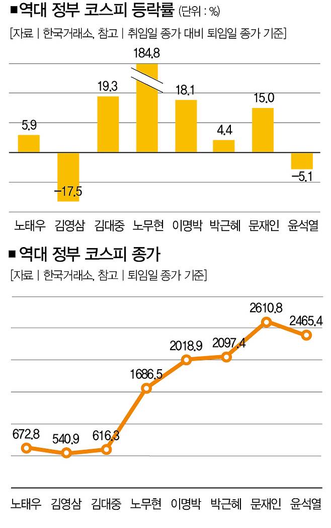 사실 이명박·박근혜 대통령도 '코스피 3000'을 공약으로 외쳤지만 둘 다 2000 초반에서 멈췄다. 윤석열 대통령도 주가 상승을 의미하는 붉은색 넥타이를 매고 거래소를 찾고 '기업 밸류업' 프로그램을 추진했지만 오히려 주가는 빠졌다.