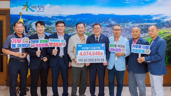 이번 성금은 합천군 가야향우 골프모임에서 주최한 골프 한마당 참가자들이 자발적으로 조금씩 모은 금액으로, 소외된 이웃에게 따뜻한 마음을 전하고자 마련됐다. 참가자들은 평소 모임을 통해 친목을 다지며 지역사회에 관심을 가져왔으며 이번 기회를 통해 작지만 뜻깊은 나눔을 실천하게 됐다.