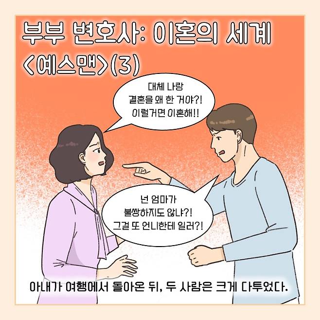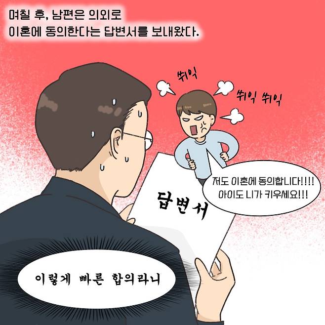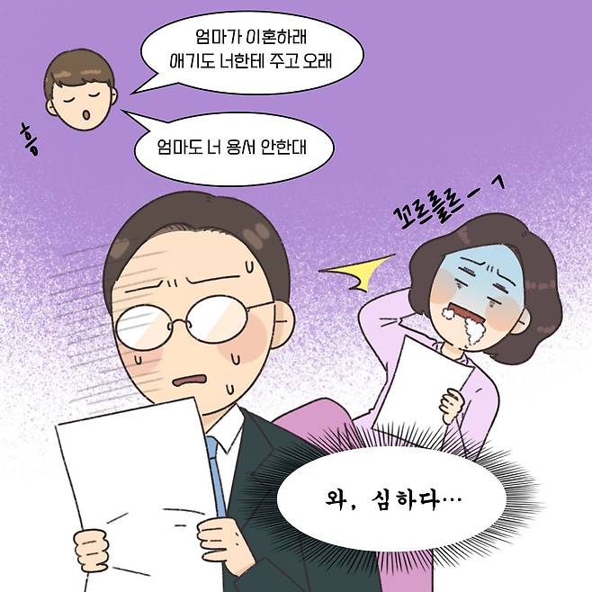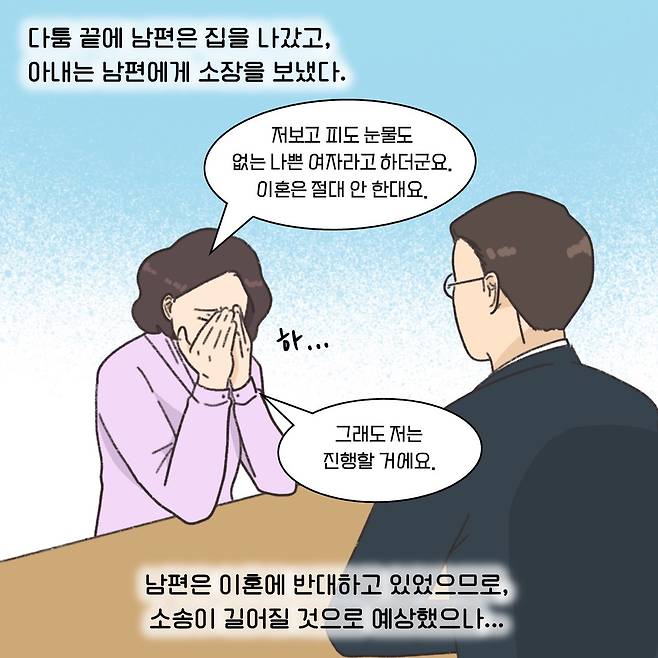 (※이 기사는 이혼 소송 과정에서 필요한 법률 지식을 웹툰 형식으로 이해하기 쉽게 제공할 목적으로 제작됐습니다. 실제 사례를 각색한 내용으로 언급되는 이름과 지명 등이 실제와 같은 경우가 있더라도 이는 우연에 의한 것임을 밝힙니다.)