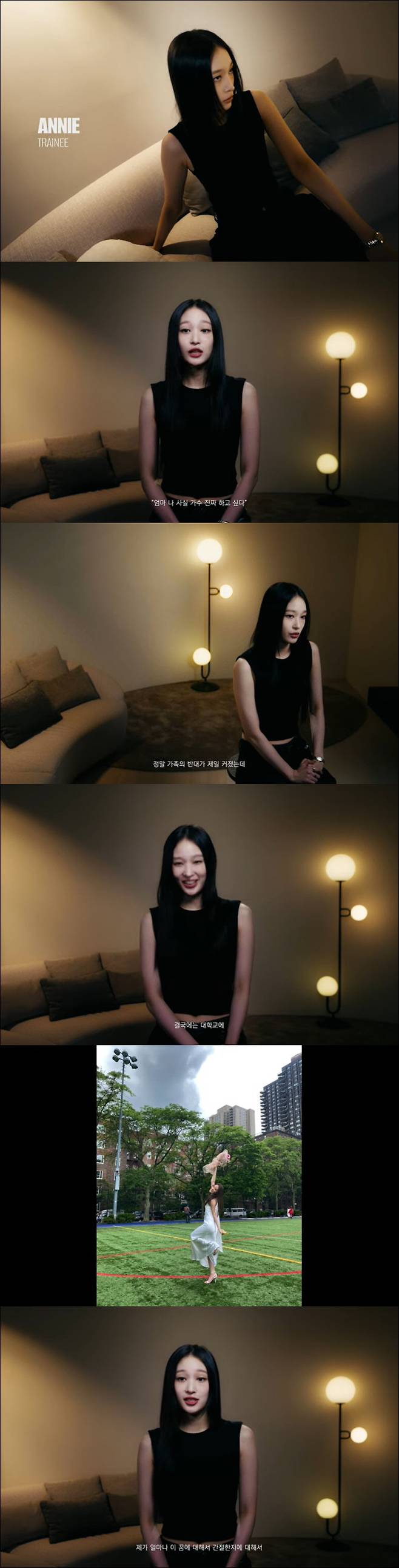 애니는 "근데 사실 엄마는 제가 대학교에 붙을 줄 몰랐다더라. 맨날 연습만 하고 하루 종일 춤만 추러 연습실 가있고 이런 애가 언제 공부를 하겠냐"며 "사람들이 제가 이 길에 대해서 진심이 아닐 거라는 생각도 많이 하고 의심을 더 많이 받으니까 제가 얼마나 이 꿈에 대해서 간절한지에 대해서 진실성을 증명해내는데 더 많은 것들을 보여줘야 했다. 조금이라도 이 데뷔라는 기회에 가까워질 수 있다는 게 좋았기 때문에 하루하루 더 열심히 했고 치열하게 했다"고 밝혔다.