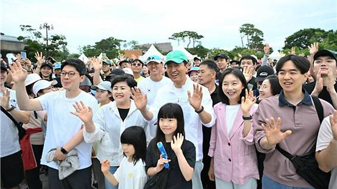 ▲ 오세훈 서울시장은 14일 오전 남산 둘레길에서 열린 '손목닥터9988 200만 돌파 기념행사'에 참석해 걷기&기부 챌린지에 참여하는 시민들을 응원했다. 이번 행사는 손목닥터9988 이용 시민 9천988명이 남산국립극장을 출발해 자연생태길, 역사문화길, 북측순환로 등을 걷는 방식이다.