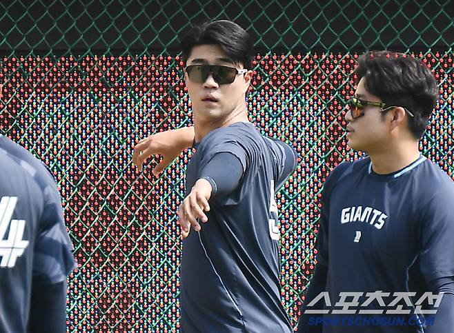 마침 이날 1군에 콜업된 윤성빈과 구승민도 등짝 스매싱에 적극 가담했다. 윤성빈은 159km의 강속구를 던지는 파이어볼러. 등을 연신 문지르는 김원중이 안쓰럽기까지 했다.