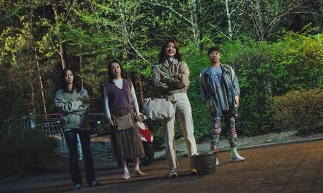 이어 위풍당당한 네 사람의 모습이 빌런 소탕에 기대감을 자극한다. 공미리는 마치 선전포고를 하는 듯 팔짱을 낀 채 당당한 미소를 짓고 있다. 그를 중심으로 압도적 포스를 내뿜는 추경자, 전지현, 박소희의 모습 역시 시선을 사로잡는다. 또한 비장한 표정으로 커다란 양동이를 품에 꼭 안고 있는 공미리의 모습까지 공개돼 이들이 어떻게 빌런을 응징할 것인지 호기심을 자극한다.