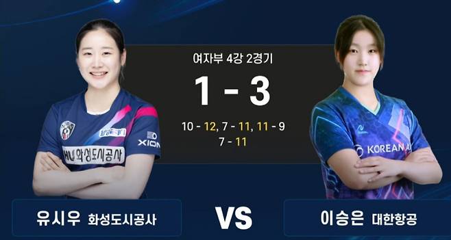 이승은은 13일 경기도 광명 아이벡스(IVEX) 스튜디오 특설경기장에서 펼쳐진 여자단식 4강에서 '화성도시공사 에이스' 유시우를 게임스코어 3대1로 꺾고 결승행에 성공했다.
