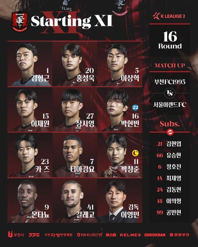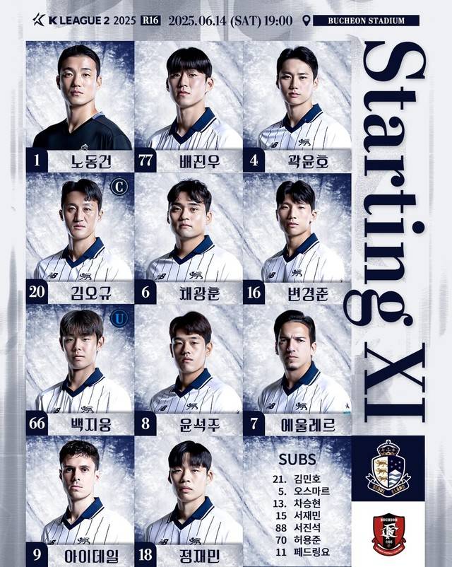 14일 오후 7시, 부천종합운동장에서 하나은행 K리그2 2025 16라운드 부천 FC 1995(이하 부천)-서울 이랜드 FC(이하 서울 이랜드)전이 킥오프한다. 두 팀은 게임에 앞서 선발 라인업을 발표했다.