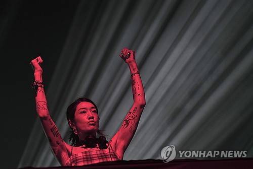 epa12174751 South Korean DJ Peggy Gou performs during the Sonar Music Festival in Barcelona, Spain, early 14 June 2025. The Sonar festival runs from 12 until 14 June 2025 in Barcelona. EPA/ALEJANDRO GARCIA