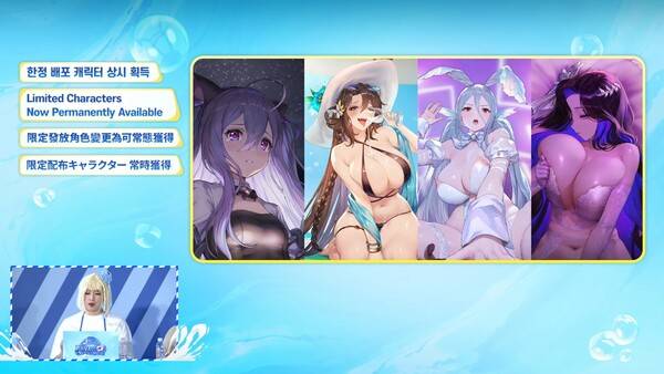 메인 방송 무대에서 개발진 4인방은 그야말로 팬들에게 몸을 던졌다. 지난 10일 공개되며 이용자들에게 여러 의미로 충격을 안겼던 수영복 버전으로 등장했고 다양한 이벤트로 웃음을 선사했다.