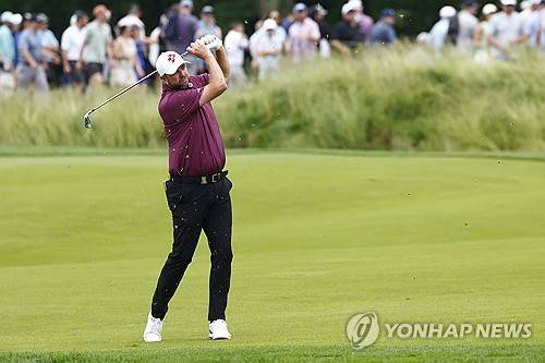epa12175487 Marc Leishman of Australia hits from the fairway of the 9th hole during the third round of the 2025 US Open golf tournament at the Oakmont Country Club in Oakmont, Pennsylvania, USA, 14 June 2025. EPA/JARED WICKERHAM