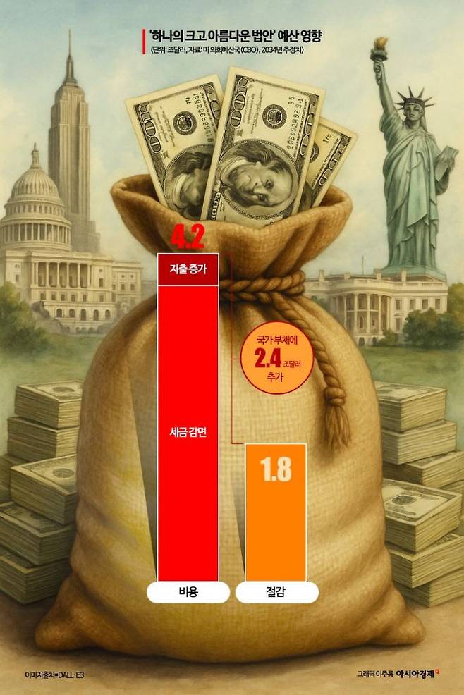 그러나 해당 법안이 상원을 통과할 수 있을지 여부는 불투명하다. 이 법안이 통과하면 미국 경제에 이미 부담을 주고 있는 정부 재정 적자가 크게 악화할 것이라는 우려가 쏟아지고 있기 때문이다. 미 의회예산국(CBO)은 지난 4일 공개한 보고서에서 이 법안이 그대로 시행될 경우 향후 10년간 미국의 재정 적자가 추가로 2조4000억달러(약 3300조원) 증가한다고 추정했다.