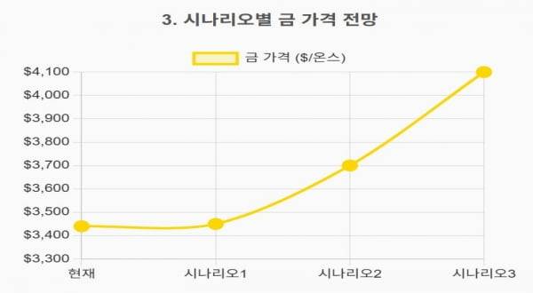 다만 OPEC+의 증산 여력과 미국의 전략비축유 방출로 일부 완충 가능성도 있다. 금 가격 역시 강세 폭이 확대될 전망이다. 현재 온스당 3400달러대인 4000달러도 겨냥할 수 있다는 전망까지 거론된다. 달러 약세 현상이 나타나면 금 수요는 더 급증할 것이다.