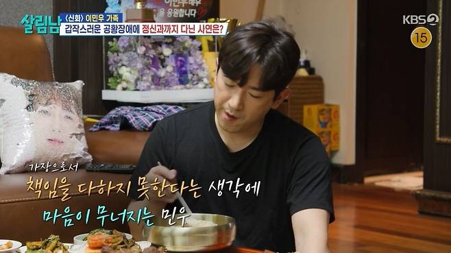 이민우 어머니는 기운이 없는 아들을 위해 허리 보호대를 차고 푸짐한 밥상을 차렸다. 이민우는 부모님의 걱정에 머뭇거리다 "일이 없어지니까 스트레스였다"라며 "내가 이 집안의 가장인데 현타가 온다"고 밝혔다. 백지영은 "아버지 사업 문제로 열아홉 나이부터 가장 역할을 했다 보니 그 역할을 못하는 자신이 더 초라해 보이는 것 같다"라면서 이민우가 조카 등록금까지 지원해 줬다고 말해주었다.