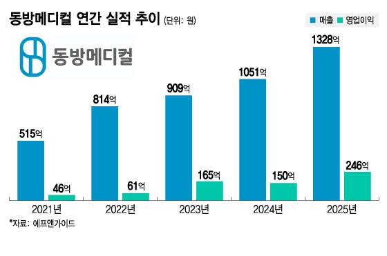 증권업계는 해당 호재를 앞세운 동방메디컬이 또 한번 사상 최대 실적을 경신할 것으로 보고 있다. 증권정보업체 에프앤가이드에 따르면 올해 동방메디컬 실적 전망치는 매출액 1328억원, 영업이익 246억원이다. 전년 대비 26.4%, 64.0% 증가한 수치다. 수익성 높은 미용 분야 매출 비중 확대에 따른 큰 폭의 수익성 개선 전망이 두드러질 전망이다.
