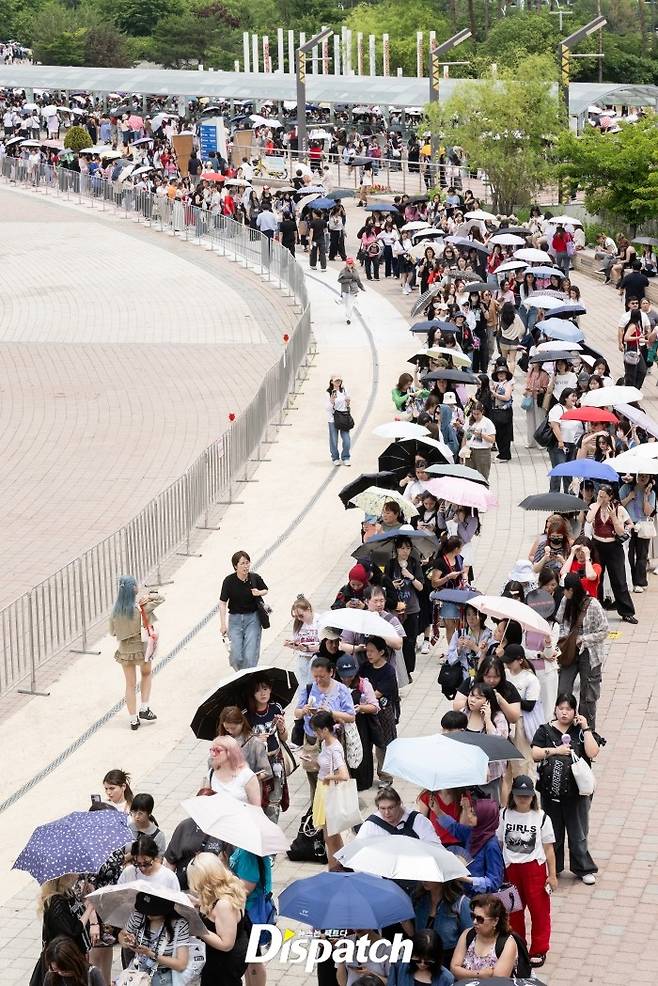 '디스패치'도 이날 현장을 찾았습니다. 이날 최고기온은 27도로 무더웠는데요. 아미의 열정에 비할 수 없었습니다. 줄은 끝도 없이 이어졌는데요.