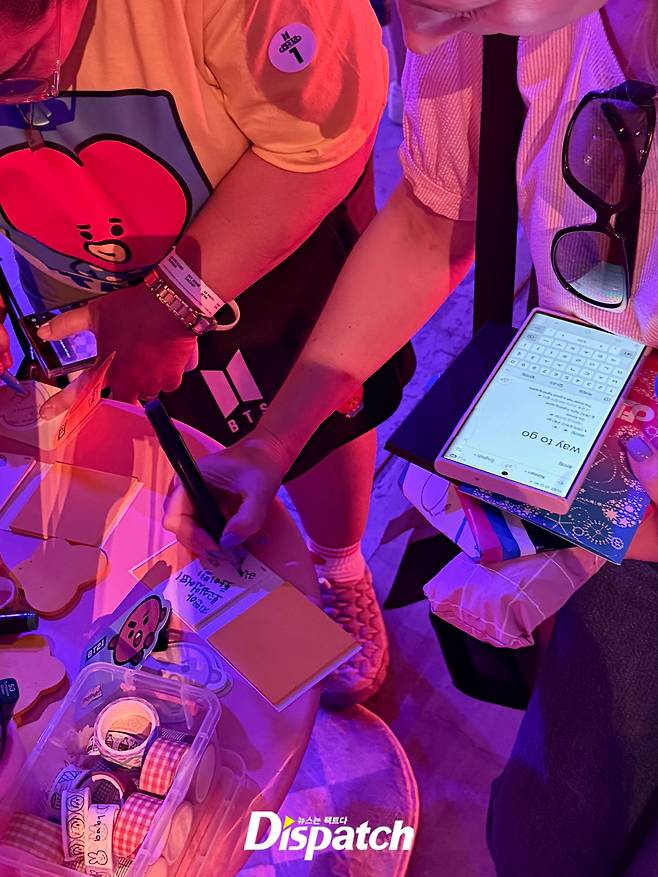 한켠에는 아미들의 진심을 전했습니다. 팬들은 일제히 번역기 앱을 켜고 한 자 한 자 눌러적었는데요. 한국어는 서툴렀지만, 사랑에는 프로였습니다.