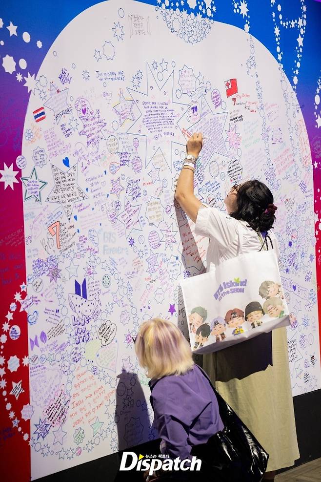 아미의 마음을 다 담기엔, 포스트잇이 너무 작았습니다. 대형 아트워크를 세워, 아미들이 마음껏 사랑을 표현할 수 있게 했는데요.