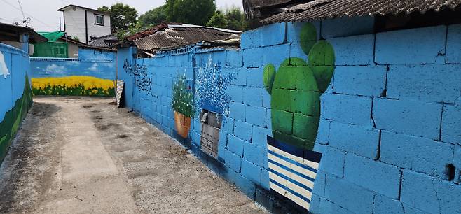 함안군농업기술센터는 지난 3월부터 5월까지 기존 시멘트 담벽의 어두운 골목담벽을 화려하고 아름다운 벽화거리로 탈바꿈시켜 마을 전체에 활력을 불어넣는 화사한 분위기의 벽화거리 2개 마을을 조성했다.