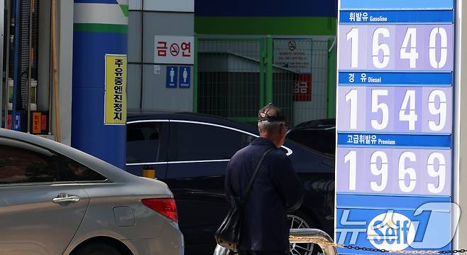 지난 14일 한국석유공사 유가정보시스템 오피넷에 따르면 6월 둘째 주(8∼12일) 전국 주유소 휘발유 평균 판매가는 직전 주 대비 L당 2.1원 내린 1천627.7원이었다. 하지만 이스라엘이 이란을 공습했다는 소식이 전해지며 국제유가가 10% 급등한 가운데 국제유가 변동은 시차를 두고 국내 유가에 반영될 전망이다. 사진은 15일 서울 시내 한 주유소 모습. 2025.6.15/뉴스1