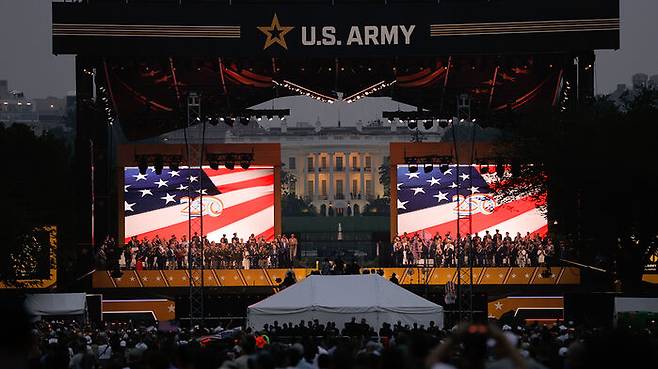 이날 열병식 때 낙하산을 타고 강하한 육군 골든나이츠 장병이 트럼프 대통령에게 미국 국기를 전달했으며, 열병식은 불꽃놀이로 막을 내렸습니다.
