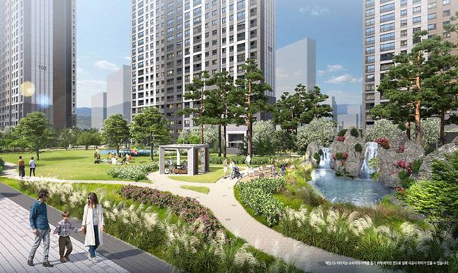 더불어 단지는 12%대의 압도적으로 낮은 건폐율을 적용하고, 넓은 대지면적에 다양한 조경을 마련해 쾌적함을 더했다. 단지 내 대형 센트럴파크를 비롯해, 단지를 가로지르는 바람길과 패밀리파크, 수경시설, 에코숲, 리빙가든 등 테마형 조경시설이 꾸며진다.