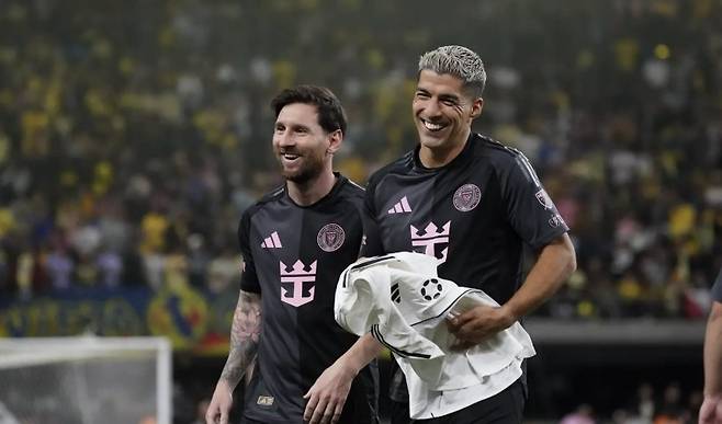| ▲ 클럽 월드컵 개막전에 나선 인터 마이애미 소속 리오넬 메시(좌)와 루이스 수아레스(우) |