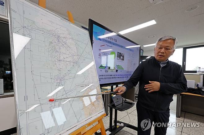 (제주=연합뉴스) 임화영 기자 = 고철승 제주항공무선표지소장이 13일 제주 서귀포시 한라레이더 기지에서 한라레이더 브리핑을 하고 있다.