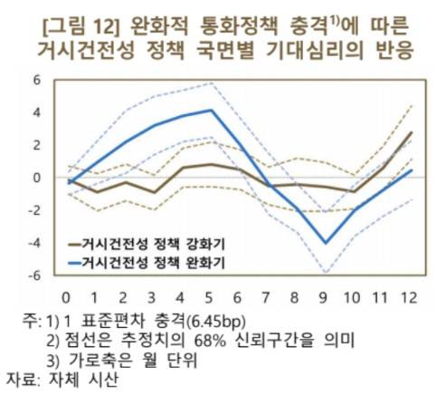 이어 통화정책과 거시건전성 정책을 같은 방향으로 운영하면 기대심리가 크게 변동하는 반면, 두 정책을 반대로 운영하면 서로 효과를 상쇄해 기대심리에 큰 변화를 일으키지 않는다고 짚었다.