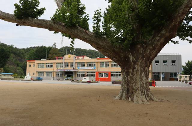 임고면 행정복지센터 주차장에는 인적이 없다. 차에서 내려 주위를 둘러보니 도시와는 전혀 다른 풍경이 펼쳐진다. 우람한 나무, 운동장, 놀이터, 그리고 아담한 학교 건물이 한 폭의 그림 같기만 하다. 담장이 없어 바로 교정으로 들어설 수 있지만 왠지 아이들이 걷던 길로 가고 싶다. 천천히 입구 쪽으로 발길을 옮긴다. 길 위에는 '선생님! 사랑합니다. 감사합니다'라는 글귀가 적힌 현수막이 걸려 있고 가지치기를 마친 키 큰 나무들이 좌우로 도열해 나그네를 맞는다.