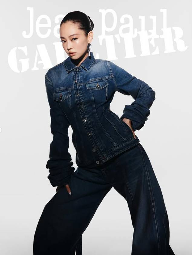 이번 화보는 장 폴 고티에의 2025 가을 기성복 프리 컬렉션 캠페인으로, 제니는 특유의 카리스마와 독보적인 패션 소화력으로 시선을 사로잡았다.
