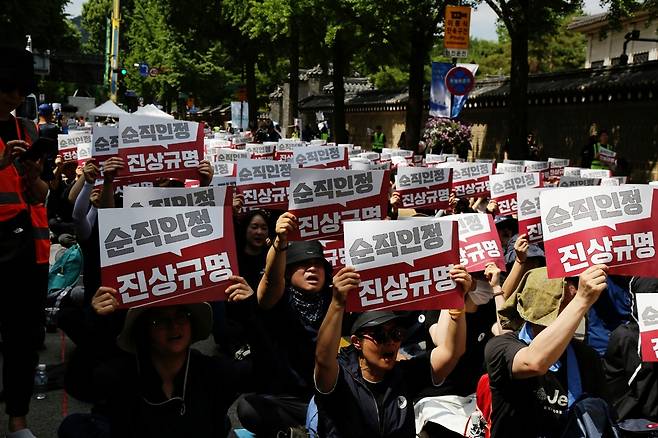 | ▲ 서울 광화문 정부청사 근처에서 열린 추모 집회에 참가한 1만여명 교사들이 진상 규명과 순직 인정을 요구했다. |