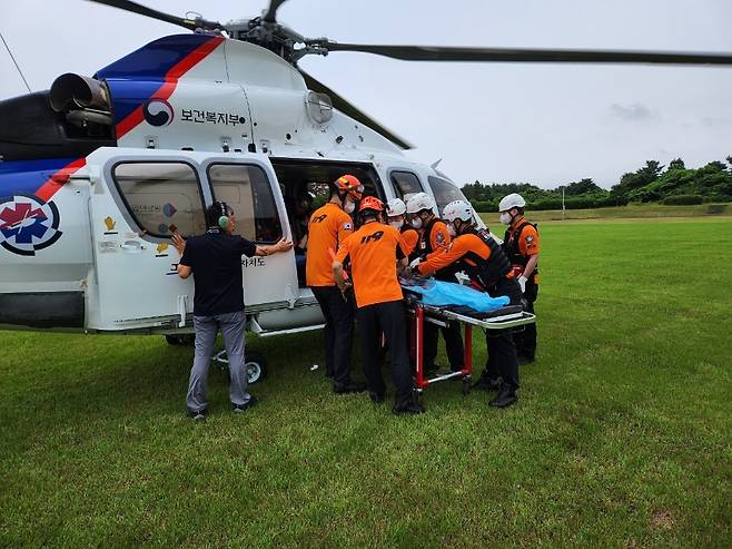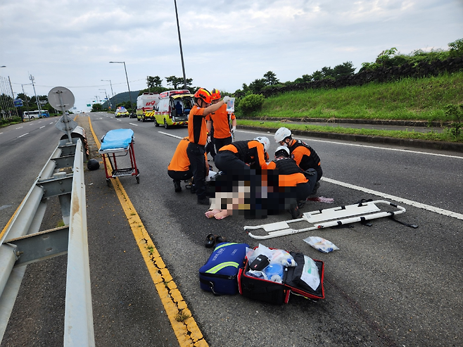 사고 접수 5분만에 현장에 도착한 구조대는 A씨가 출혈이 심한 상황이라 응급조치를 하고, 닥터헬기를 요청했습니다.