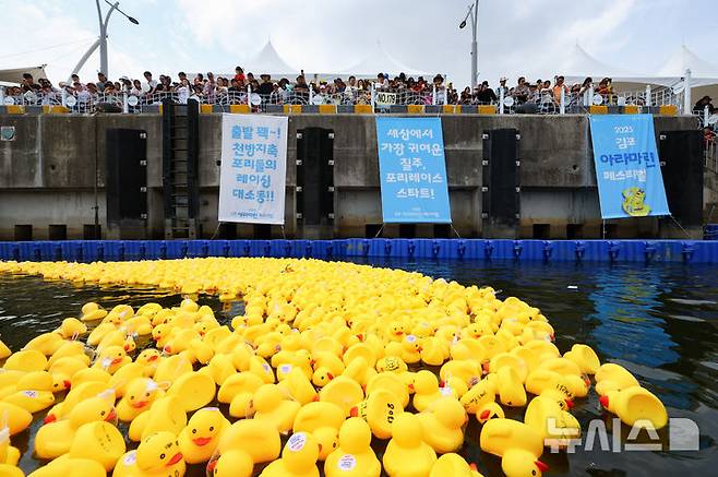 [김포=뉴시스] 황준선 기자 = 15일 경기 김포시 마리나베이에서 열린 아라마린페스티벌에서 포리레이스 경기가 펼쳐지고 있다. 2025.06.15. hwang@newsis.com