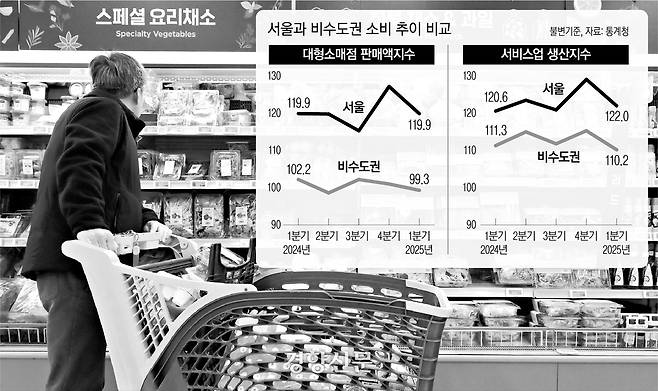 수도권에 비해 지방의 소비 성향이 상대적으로 위축된 점도 지역화폐 할인율 차등 지원의 배경으로 꼽힌다. 올해 1분기 기준 서울의 대형소매점 판매액지수(불변 기준)는 119.9를 기록한 반면 비수도권은 99.3에 그쳤다. 특히 광역시를 제외한 도 지역은 경남(105.1)을 제외하고 모두 90대에 머물렀다. 같은 기간 서비스업 생산지수 역시 서울(122.0)과 비수도권(110.2) 사이에 뚜렷한 격차가 나타났다.