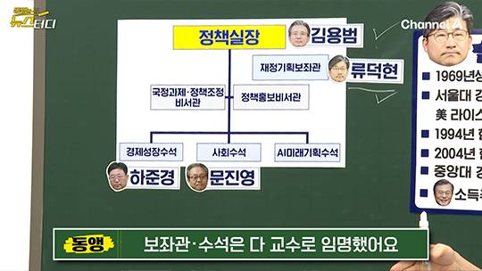정책실장 아래에는 3명의 수석 체제로 짜여졌습니다. 경제성장수석에 하준경 교수를, 사회수석에 문진영 교수를 임명했는데요. 정책실장은 관료 출신인데 보좌관‧수석은 다 교수로 임명한 거죠. 실무를 잘 아는 실장 밑에는 이론‧철학을 잘 알고 이를 잘 구현할 수 있는 사람들로 짜여졌다고 볼 수 있습니다.