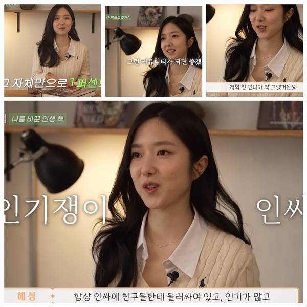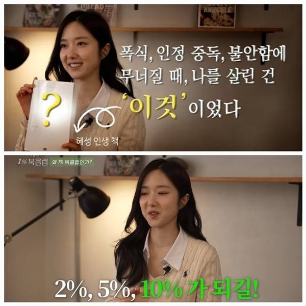공개된 영상 속 이혜성은 "폭식, 불안, 인정중독, 외로움 그 무너짐 속에서 나를 구한 건 책이었다"고 털어놓았다.