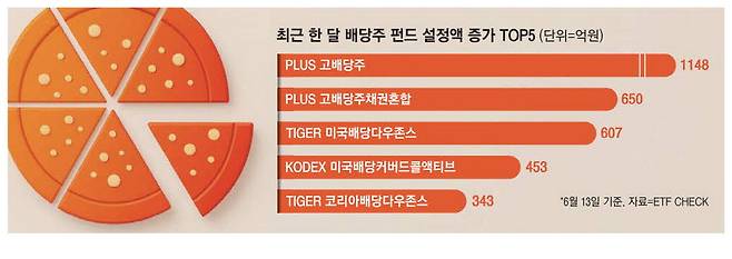 최근 한 달 새 'TIGER 미국배당다우존스'와 'KODEX 미국배당커버드콜액티브'에 각각 607억원, 453억원이 순유입된 바 있다.
