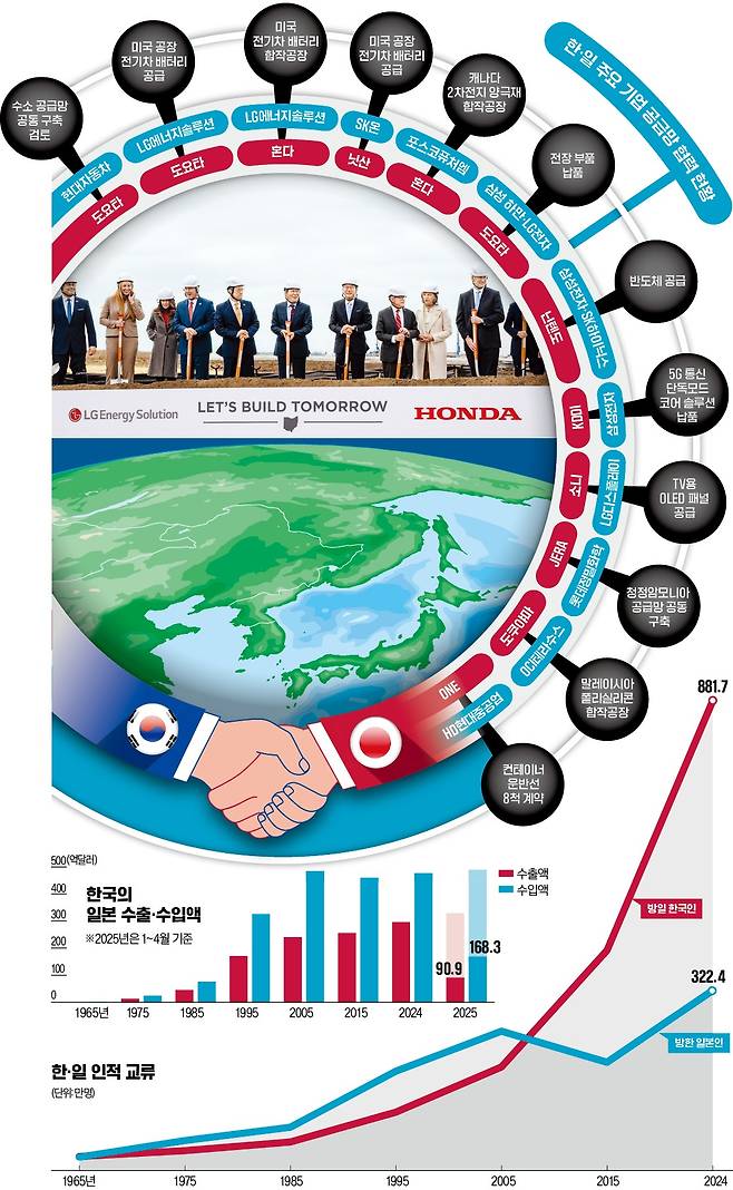 최근 일본 톱5 안에 드는 완성차 기업 중 한 곳은 동남아시아에 진출한 한국 부품사에 납품을 요청했다. 롯데정밀화학과 일본 최대 전력회사 JERA는 지난해 청정 암모니아 공급망 협약을 맺으며 수소 원료인 암모니아 유통과 해외 시장 개척에 손을 잡았다.