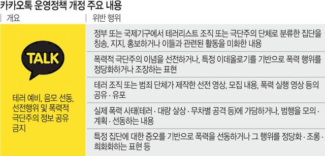 '폭력적 극단주의' 정보를 유통할 경우 이용자의 카카오톡 이용을 제한할 수 있다는 개정안이 쟁점으로 떠오르면서다.