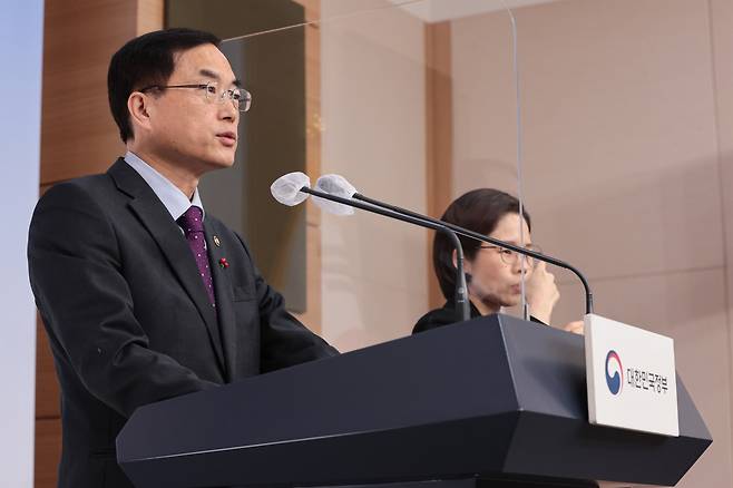 | ▲ 2023년 1월 19일 오전 서울 종로구 정부청사에서 열린 학생선수 출석인정 개선방안 관련 교육부·문체부 합동브리핑에서 조용만 당시문화체육관광부 2차관이 발언하고 있다. 교육부와 문체부는 스포츠 혁신위원회 권고안을 재검토한 결과 올해부터 학생선수가 운동과 학습을 병행할 수 있도록 출석인정 결석 허용 일수를 확대하고 맞춤형 학습을 지원하는 등 개선한다고 이날 발표했다. |