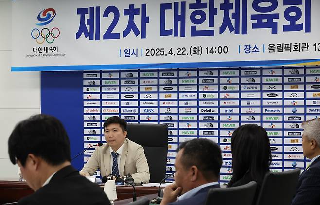 | ▲ 4월 22일 서울 송파구 올림픽회관에서 열린 제2차 대한체육회 이사회에서 유승민 대한체육회장이 발언하고 있다. |