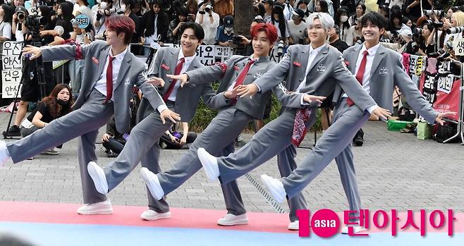 Mnet '보이즈 2 플래닛' 허씬롱,통진쿵,장슌위,쉬에수런,당흥하이 참가자들이 14일 서울 마포구 상암 DMC 공원에서 열린 첫 오프라인 이벤트 'PLANET DAY : OPEN STAGE'에 참석하고 있다.