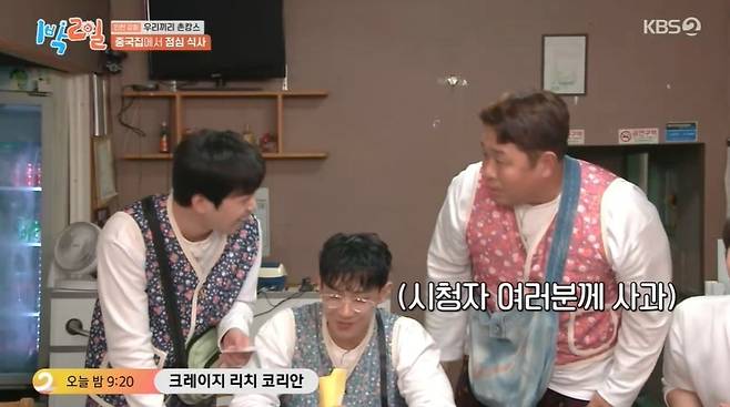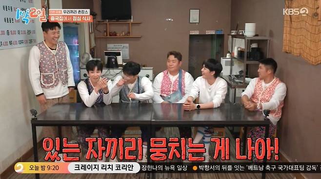 15일 방송된 KBS2 '1박 2일 시즌4'에서는 김종민, 문세윤, 딘딘, 유선호, 조세호, 이준이 촌캉스를 떠난 모습이 그려졌다.