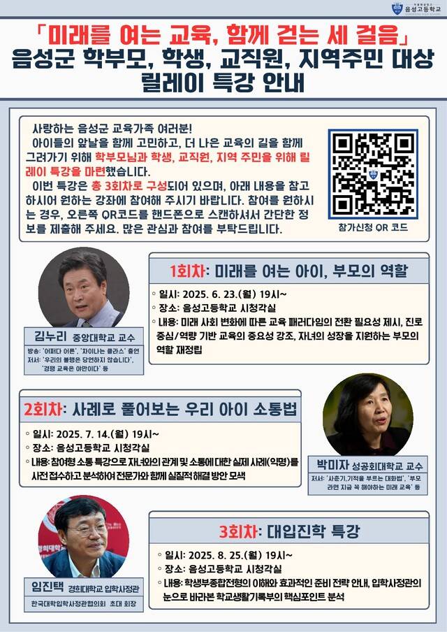 참여 희망자는 QR코드로 신청하면 된다. 궁금한 사항은 음성고 교무실(☎ 043-871-7750)로 하면 된다./김금란기자 silk8015@cctimes.kr