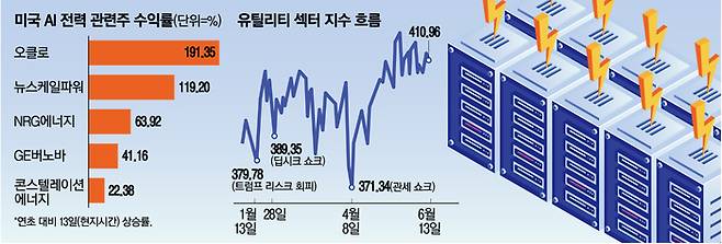 전력 수요 상승의 직접적 수혜를 받는 이들 기업은 같은 기간 S&P500지수 상승률(1.85%)을 큰 폭으로 웃돌았다.